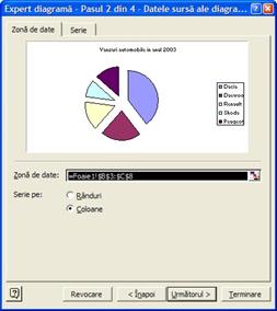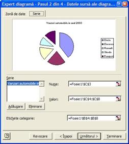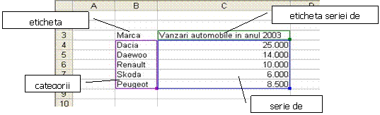 o se selecteaza celulele care contin datele ce urmeaza a fi adaugate; pentru ca eticheta de coloana pentru noile date sa apara în diagrama, se include în selectie celula care contine eticheta;