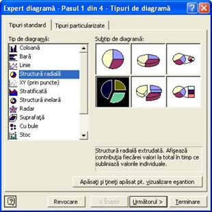 o clic dreapta pe selectie si din meniul ce apare se alege Tip de diagrama... (sau se foloseste bara de instrumente Diagrama);