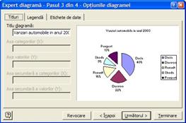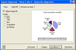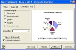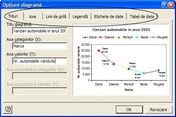 Fereastra de dialog Optiuni diagrama este de asemenea diferita, functie de tipul de diagrama selectat. De exemplu, pentru o diagrama de tip Linie, aceasta arata ca n figura 13.