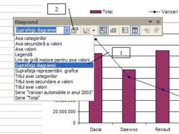 Se selecteaza zona din diagrama ce urmeaza a fi formatata (clic cu butonul st ng al mouse-ului ntr-o zona a diagramei);