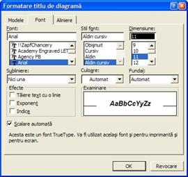 Titlul diagramei va fi scris cu font Arial, 12 pt, Aldin cursiv;