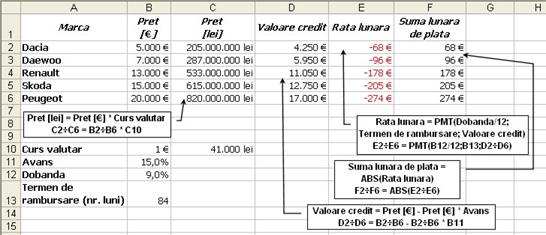 Se completeaza tabelul de valori cu datele din figura 3 (câmpurile Pret si Total), dupa care se formateaza (vezi figura 14);
