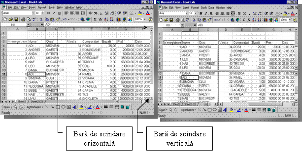 Când sunt introduse înregistrari care se repeta MS EXCEL va recunoaste primele litere si va completa restul înregistrarii.