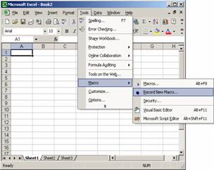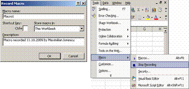 Deschiderea ferestrei RecordMacro: Tools, Macro, RecordNewMacro. .