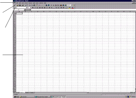 Ecranul de deschidere din Excel (vezi figura 1.1) prezinta un registru de calcul gol, având eticheta Book1. Programul este acum pregatit pentru ca dumneavoastra sa începeti lucrul în registrul de calcul.