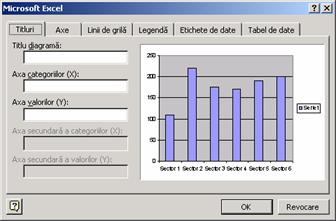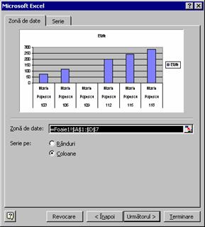 - Butonul de optiune Coloane selectat, precizeaza faptul ca seriile de date sunt din coloanele foii de lucru.