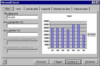 Se selecteaza optiunile dorite apoi se face click pe Urmatorul (se afiseaza caseta de dialog Expert diagrama - Pasul 3 din 4