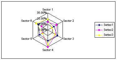 Un grup de puncte de date aflate în relatie care se reprezinta grafic într-o diagrama. Fiecare serie de date dintr-o diagrama are o culoare sau un model unic si este reprezentata în legenda diagramei. Se pot reprezenta grafic una sau mai multe serii de date într-o diagrama. Diagramele radiale au doar o serie de date. |