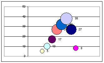 - Butonul de optiune Afisare dimensiune bule (selectat) afiseaza dimensiunile pentru fiecare balon într-o diagrama cu bule, pe baza valorilor celei de-a treia serii de date.