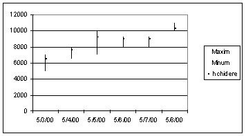- Butonul de optiune Automat (selectat) afiseaza datele automat ca date calendaristice, daca datele axei X au formate de date calendaristice (daca datele calendaristice nu sunt în secventa, insereaza si datele calendaristice lipsa). Daca datele axei categorie (X) nu sunt date calendaristice, le afiseaza ca atare.