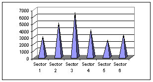 Daca au fost realizate diagrame radiale compacte, ulterior pot fi despartite sectoare din diagrama (cele mai reprezentative). Pentru aceasta, se selecteaza sectorul dorit (punctul de data), apoi se gliseaza usor cu mouse-ul în exterior.