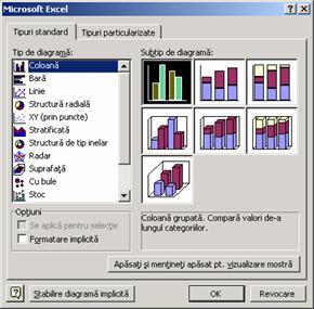 tipurile de diagrame standard disponibile (tab-ul Tipuri standard