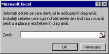 Daca datele au fost selectate înainte de pornirea Expertului diagrama, în caseta Zona de date apar referintele zonei de date care va fi reprezentata grafic. Daca este necesar, se modifica referintele zonei.