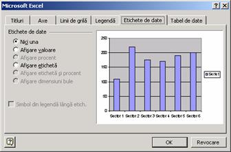 - Caseta de control Simbol din legenda lânga etich. (selectata) pozitioneaza simbolurile din legenda, cu formatul si culoarea asociate, lânga etichetele de date din diagrama.