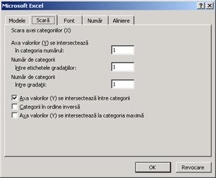 - Caseta de control Axa categoriilor (X) (selectata) afiseaza axa categoriilor (x).