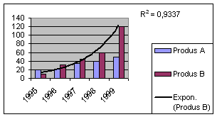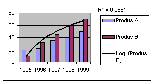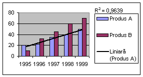 O reprezentare grafica a tendintei sau directiei datelor dintr-o serie. Liniile de tendinta sunt utilizate pentru studiul problemelor de prognoza, numite si analize de regresie. Liniile de tendinta se pot adauga seriilor de date din diagrame suprafata plana 2-D, bara, coloana, linie, stoc, xy (prin puncte) si cu bule. |