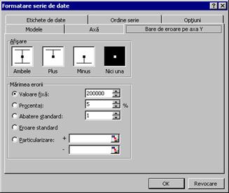 Particularizare - se introduce o valoare în caseta (+) sau în caseta (-) sau în amândoua, pentru a utiliza o valoare particulara ca marime a erorii pentru fiecare punct de date.