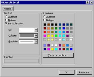 Aplicarea bordurilor si a efectelor de umplere se fac cu optiuni din tab-ul Modele din casete de dialog care se afiseaza cu urmatoarele comenzi: