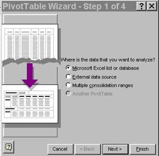 Tabelele pivot se creaza utilizand PIVOT TABLE WIZARD