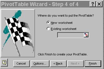 v in caseta Pivot Table Starting Call, se introduce celula din stanga susu a tabelului pivot;