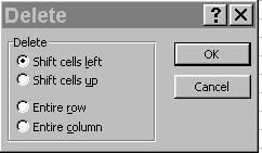 Entire Column- sterge toate coloanele care contin celulele selectate.