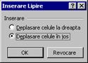 Cānd se alege Inserare Decupare celule nu se afiseaza nici o caseta de dialog, iar inserarea se face cu deplasarea celulelor la dreapta.