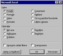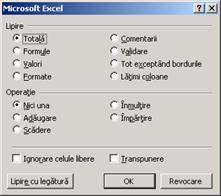 Se alege Editare Inserare speciala (se afiseaza caseta de dialog de mai jos).