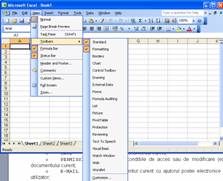 Excel pune la dispozitie o serie de instrumente, care ofera acces imediat la multe dintre comenzile foii de calcul. Pentru a utiliza aceste instrumente, va trebui intai sa afisati pe ecran barele cu instrumente corespunzatoare.