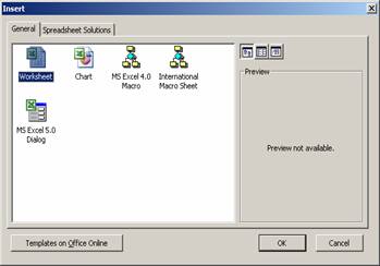 · 939j97j 939j97j 939j97j 939j97j 939j97j 939j97j Din caseta de dialog care apare ca urmare a selectarii comenzii Insert se selecteaza pictograma Worksheet pentru a indica programului Excel ce anume dorim sa inseram, dupa care se executa click pe butonul Ok ;