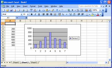 La crearea si modificarea unei diagrame putem utiliza bara cu instrumente de lucru Chart. Daca nu este afisata o putem activa valindand Chart de la optiunea Toolbars din meniul View