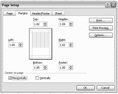Setati prima foaie de calcul a agendei de lucru astfel: format A4; margini: sus 1.82, jos 1.85, stanga 1.65, dreapta 1.62; antet 1.09, subsol 1.05; orientare orizontala.