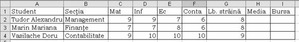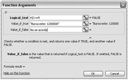 campul se va completa selectiv, in functie de valoarea corespondenta din campul Media folosind functia if conform relatiei: daca media>=9 atunci Bursa este de 1200000 lei, altfel nu se acorda;