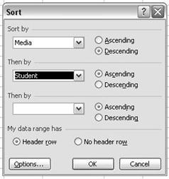 sortati baza de date descrescator dupa Media si alfabetic dupa campul Student;
