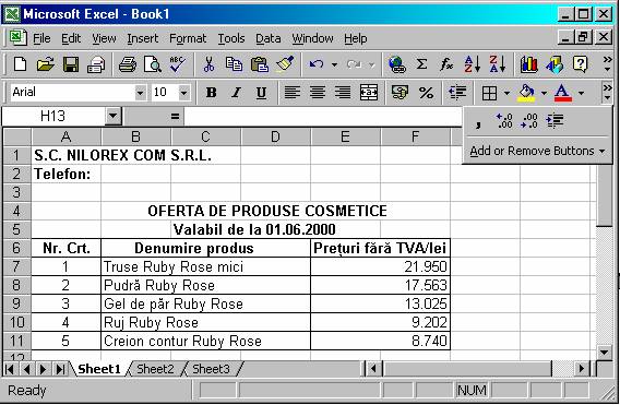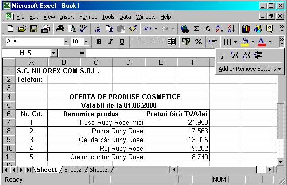 Efectuati clic pe butonul Comma Style (cu virgula), din bara de instrumente Formatting