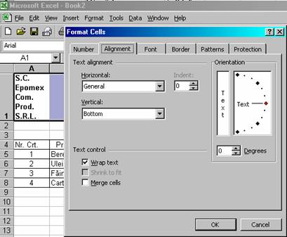 Efectuati clic pe rubrica Alignment si selectati Wrap Text din regiunea Text Control
