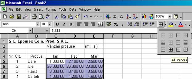 Executati clic asupra butonului Borders din bara cu instrumente de formatare.