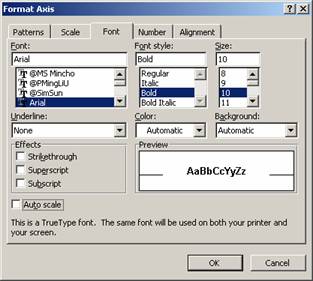 Executa secventa Format\Selected Axis pentru a afisa caseta Format Axis.