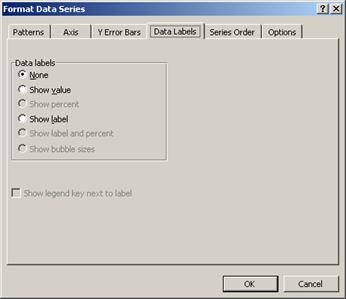 Dupa crearea etichetelor de date este posibil sa doresti sa le modifici fie aspectul, fie amplasarea astfel īncāt sa corespunda restului diagramei. Pentru a le formata trebuie sa le selectezi si apoi alege Format Data Labels din meniul Format si, din caseta care se dechide, modifica fontul, īnaltimea fontului, stilul fontului, culoarea fontului s.a.m.d. Alinierea etichetelor īn interiorul seriei de date īti ofera mai mult spatiu pe diagrama pentru a explica alte puncte de interes. Atunci cānd o eticheta este plasata īn interiorul seriei de date, daca fundalul seriei este īnchis la culoare, pentru eticheta creaza un font cu un fundal transparent pentru a evidentia eticheta.