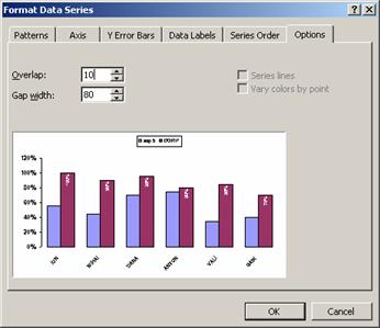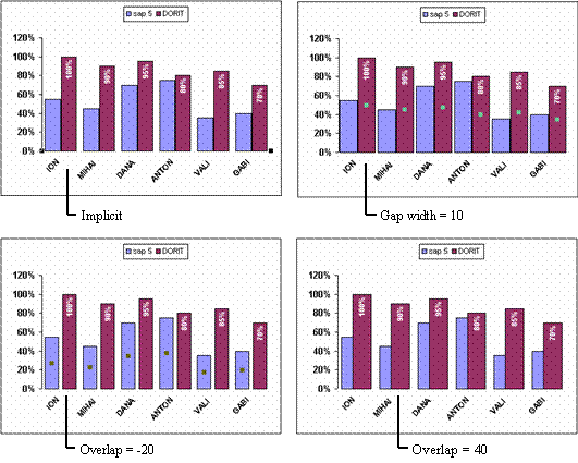 Overlap (Suprapunere) are ca rezultat suprapunerea seriilor de date, respectiv a coloanelor. Poti aseza usor coloanele una peste alta reducānd spatiul dintre coloane.