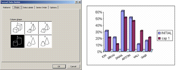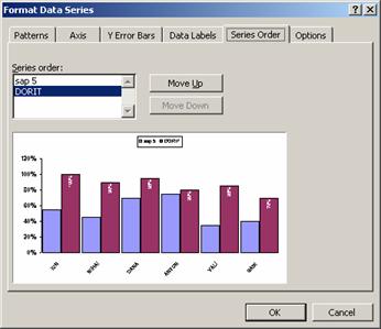 Pentru a stabili ordinea in care vor apare seriile de date īn diagrama, executa click pe numele seriei din caseta Series order si apoi, cu ajutorul butoanele Move Up si Move Down muta seria selectata īn pozitia dorita.