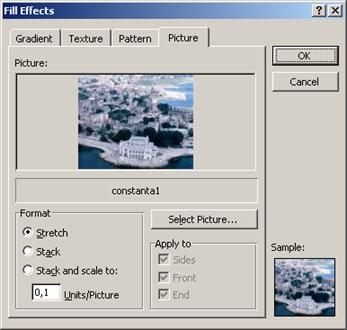 Sides (Īn lateral) - utilizata pentru diagrame 3D, aplica imaginea pe fetele laterale ale seriei de date.