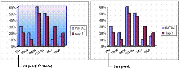 Peretii unei diagrame 3D pot fi formatati pe mai multe cai, de la stergerea lor completa pāna la aplicarea efectelor de umplere. Pentru a formata peretii unei diagrame 3D trebuie sa parcurgi pasii: