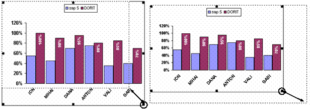 Īn general, atunci cānd creezi o diagrama aceasta nu are dimensiunea dorita. Pentru a redimensiona o diagrama trebuie sa parcurgi pasii: