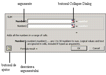 5. &nb 313i82d sp; Executa click pe cāmpul Number1, sterge orice valoare apare īn acest cāmp si selecteaza prin tragere sau prin selectare discontinua domeniul de celule sau celulele care contin argumentele.