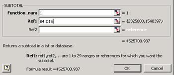 SUBTOTAL(function_num;ref1;...)