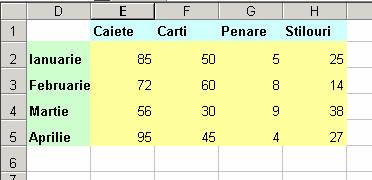 HLOOKUP(„carti”,E1:H5,2,TRUE) = 50
