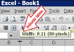 Excel, latimea coloanelor este latimea default