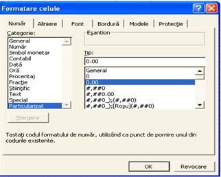 Pentru formatarea numerelor introduse în celulele selectate se va da comanda Format/Celule si se alege fisa Numar.