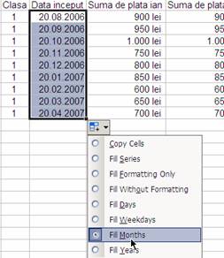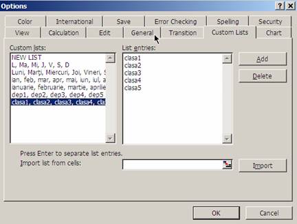 Se pot adauga serii customizate (ex: departamente sau clasa 1-clasa 12) care se introduc automat in lista prin autofill. Definirea seriilor se face din meniul Tools-Options-Custom lists.