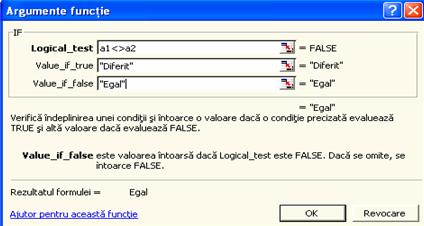 Dupa introducerea tuturor argumentelor se va da comanda OK, Programul Excel va insera īn celula selectata functia, argumentele si va afisa rezultatul.